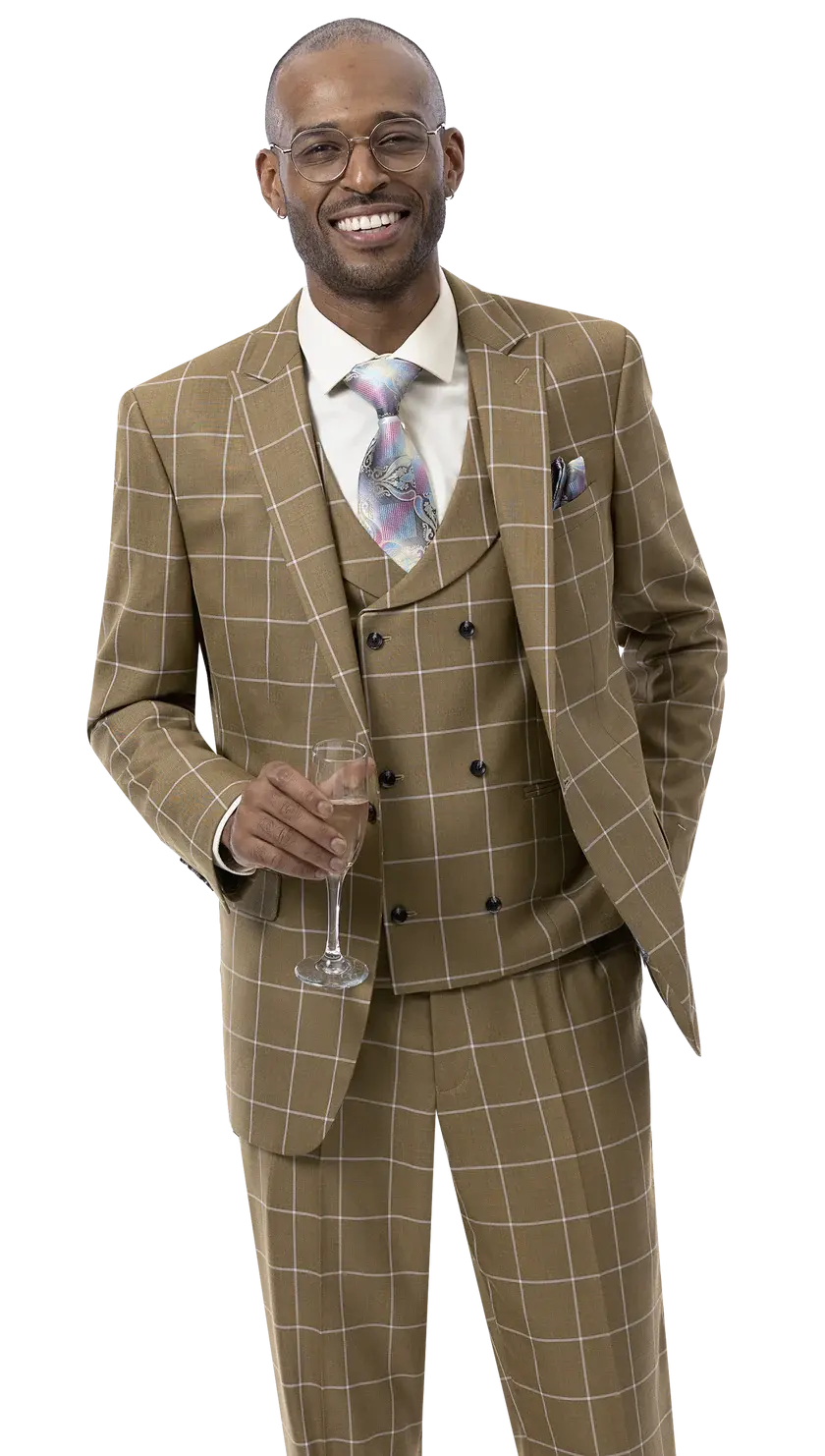 EJ Samuel M2768 Tan Fashion Vested Suit