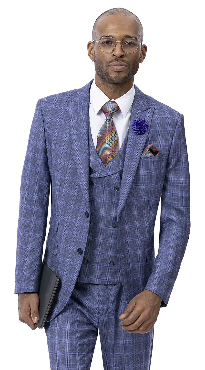 EJ Samuel M2764 Gray/Blue Fashion Vested Suit