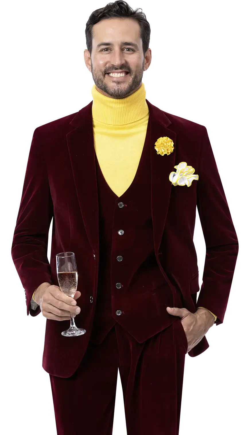 EJ Samuel JP110 Burgundy Velvet Vested Suit