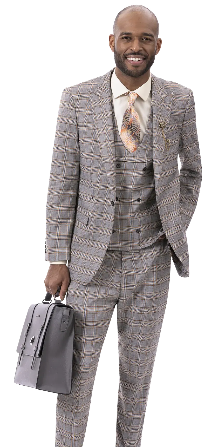 EJ Samuel M2793 Gray/Gold Vested Suit
