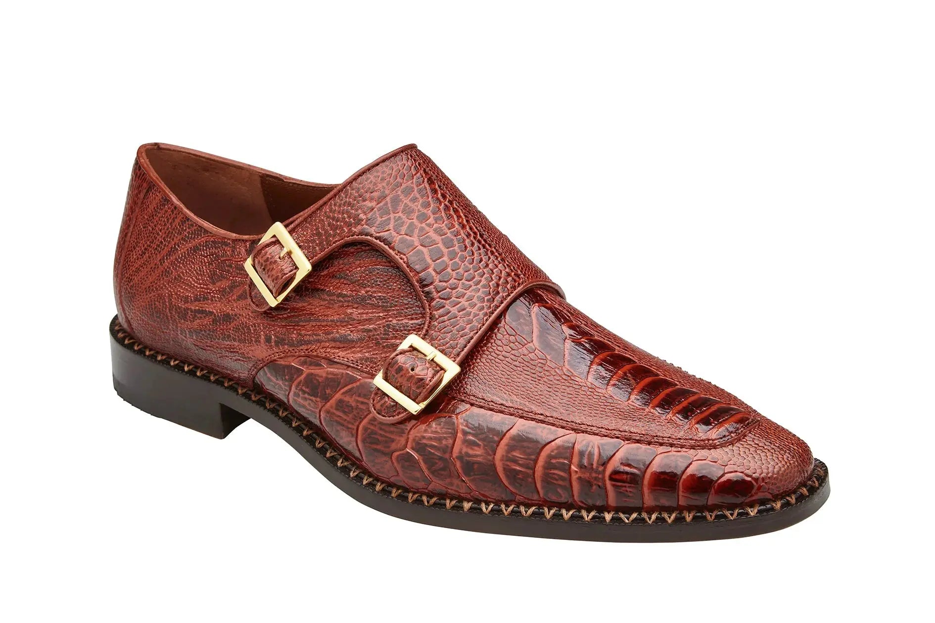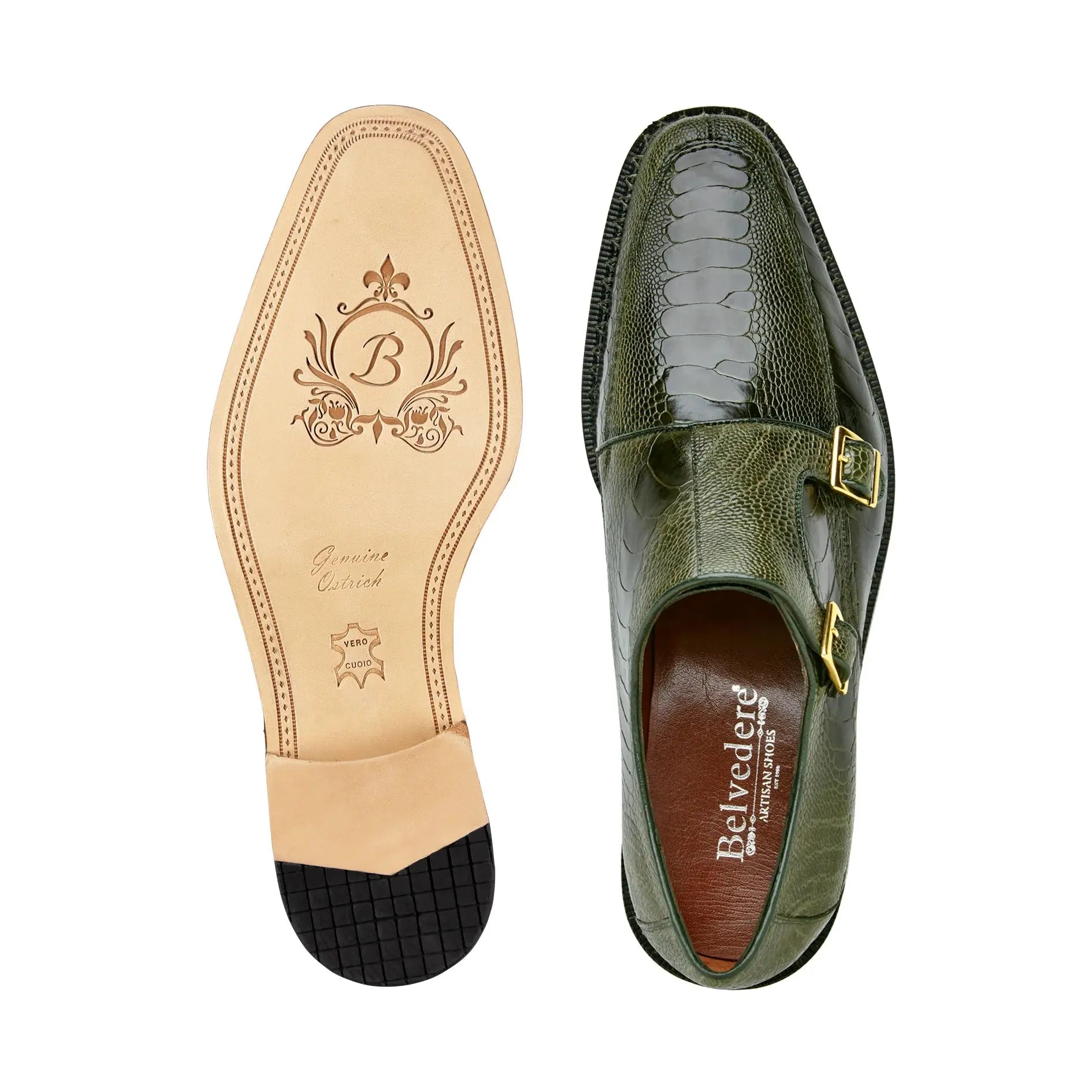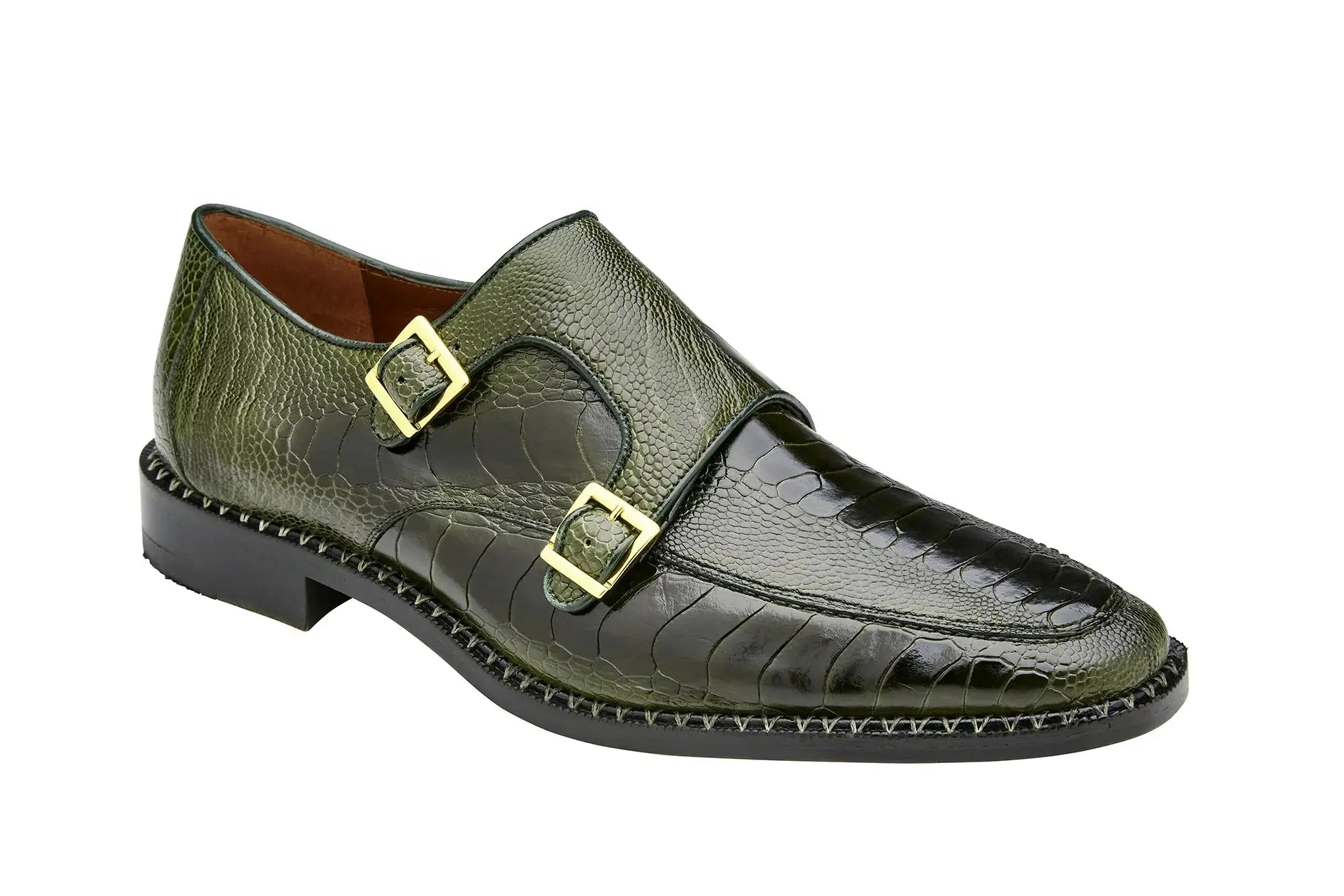 Belvedere Valiente Genuine Ostrich Double Monk Strap Dress Shoes