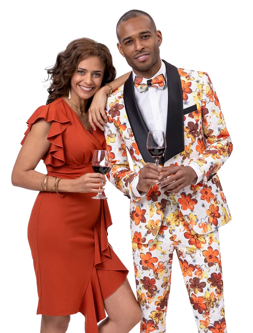 EJ Samuel JP101 Black/Orange Fashion Vested Suit