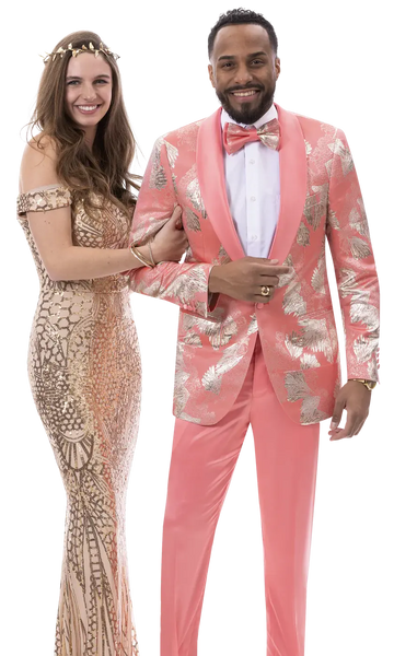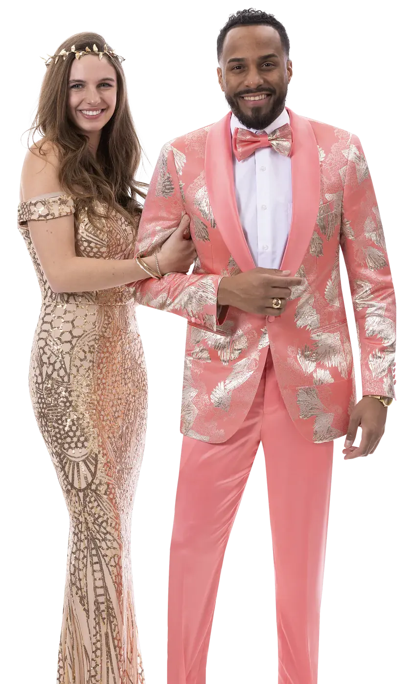 - Stylish Design: A modern, salmon-colored suit that stands out with a sleek, tailored fit.