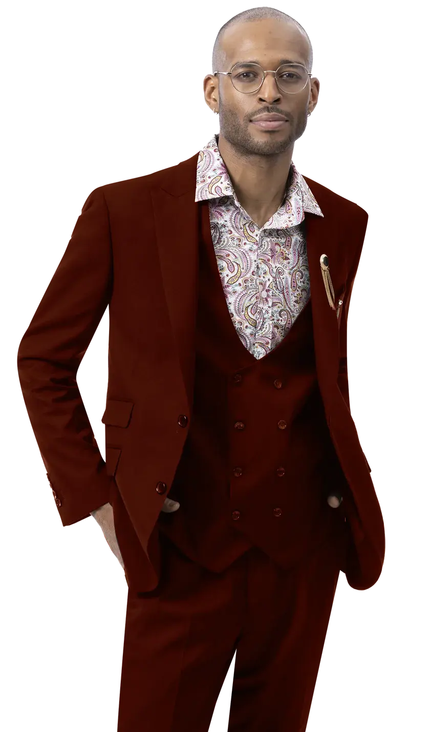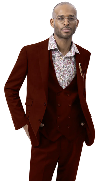 EJ Samuel M2770 Wine Fancy Vested Suit