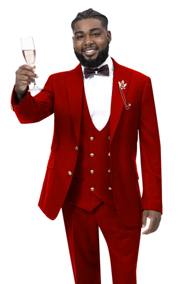 - Bold Elegance: Make a commanding entrance with this vibrant red suit, perfect for those who dare to stand out in style.