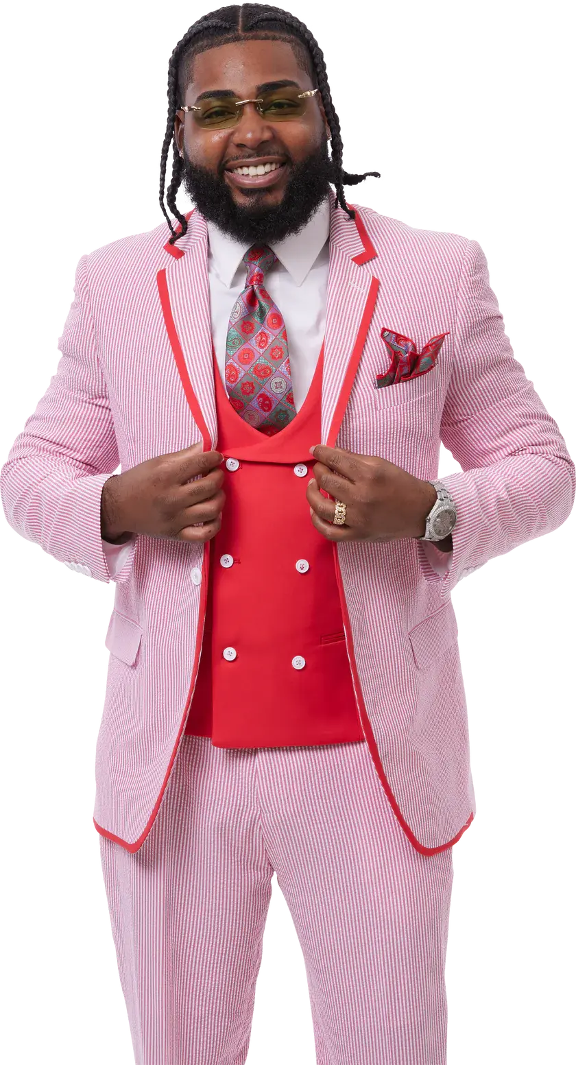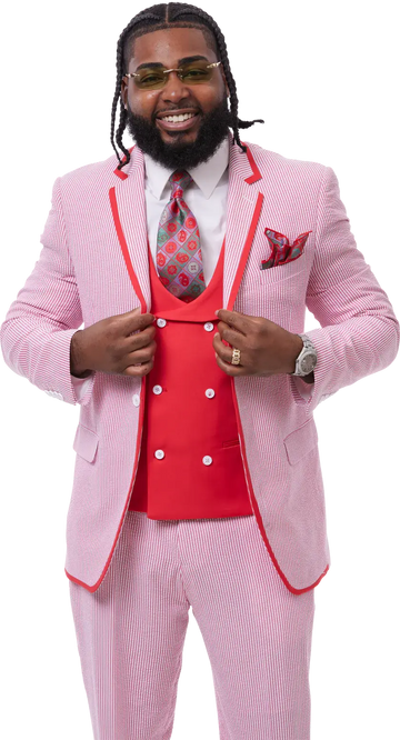 EJ Samuel M2809 Red Fashion Vested Suit