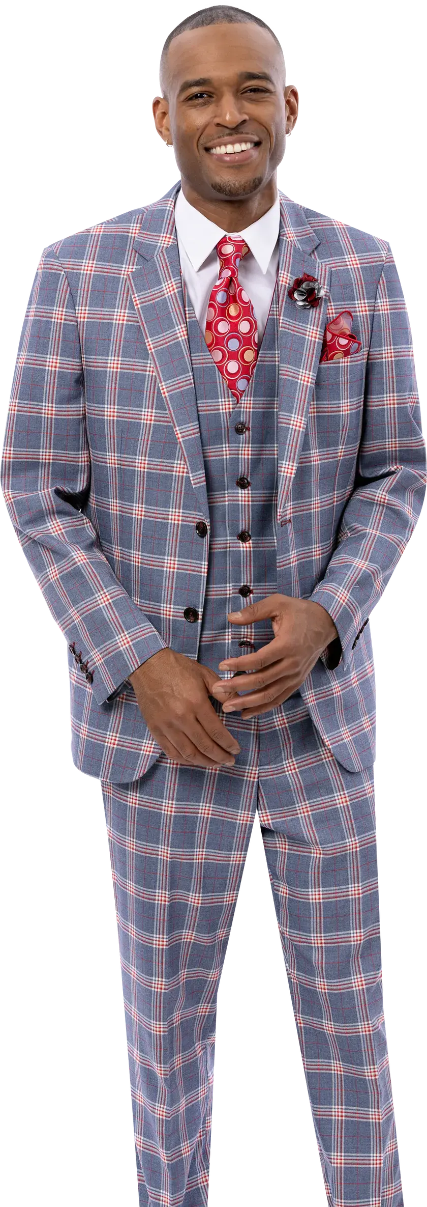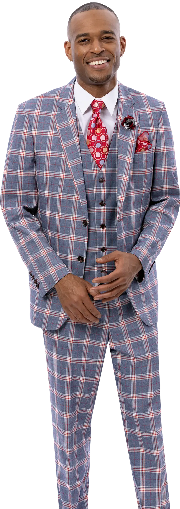 EJ Samuel M2811 Gray/Red Plaid Vested Suit