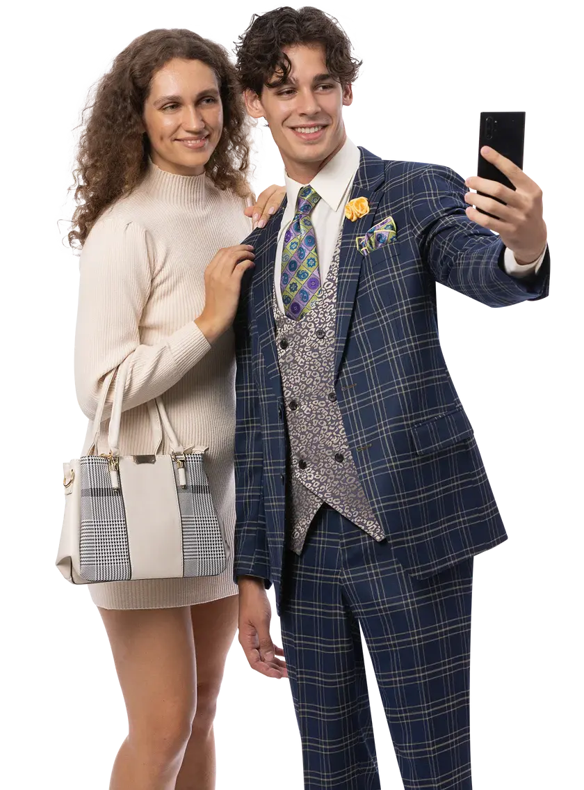 - Refined Elegance: Stand out in any setting with a classic blue plaid pattern paired with a sleek, solid vest for timeless sophistication.
