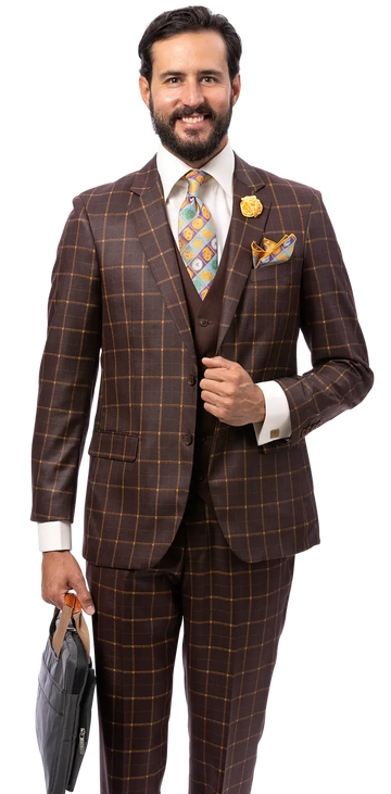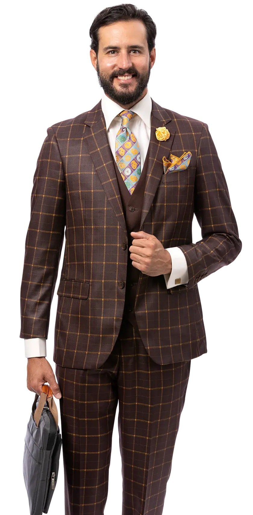 EJ Samuel M2817 Brown Plaid Vested Suit
