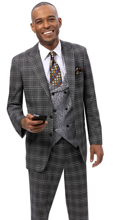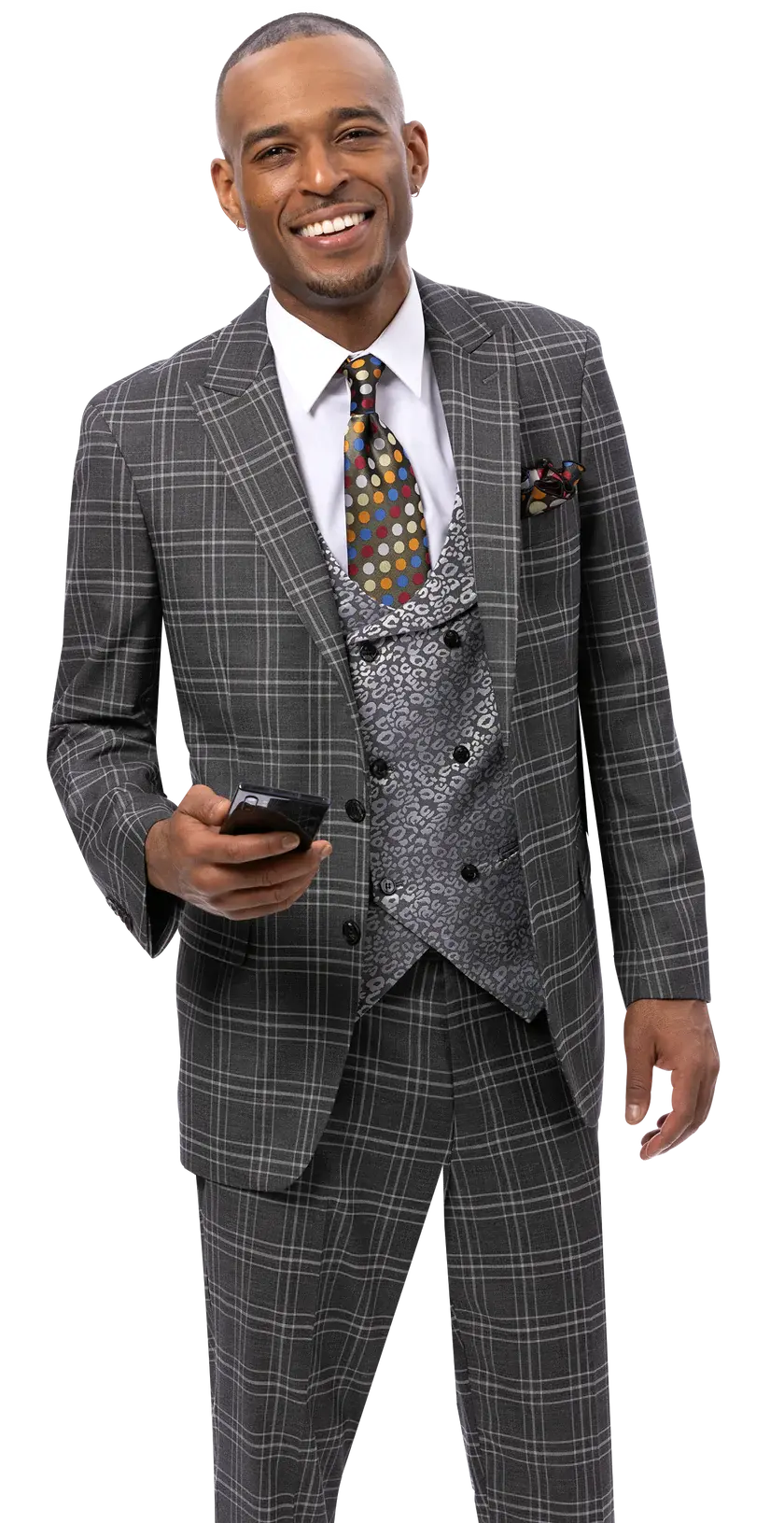 EJ Samuel M2818 Gray Plaid Vested Suit