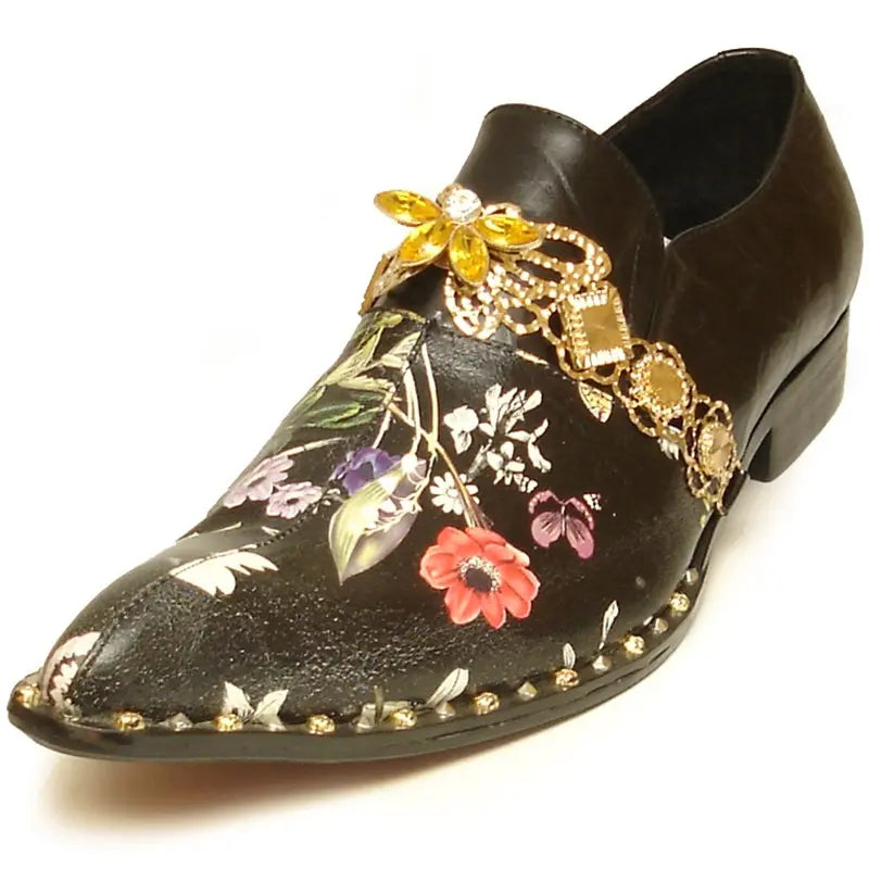 Fiesso FI-7046 Black/Gold Leather Slip On Loafers