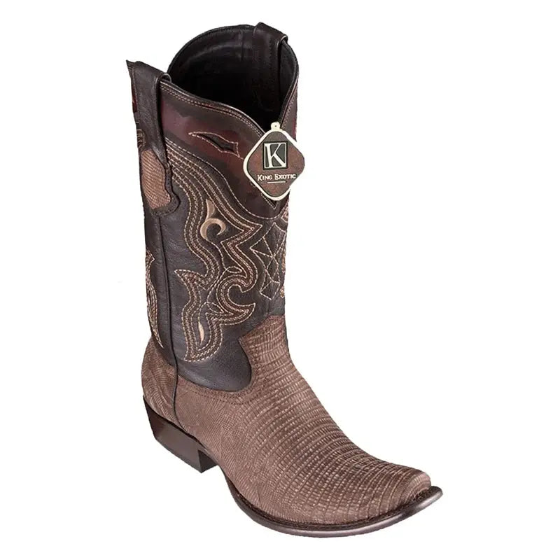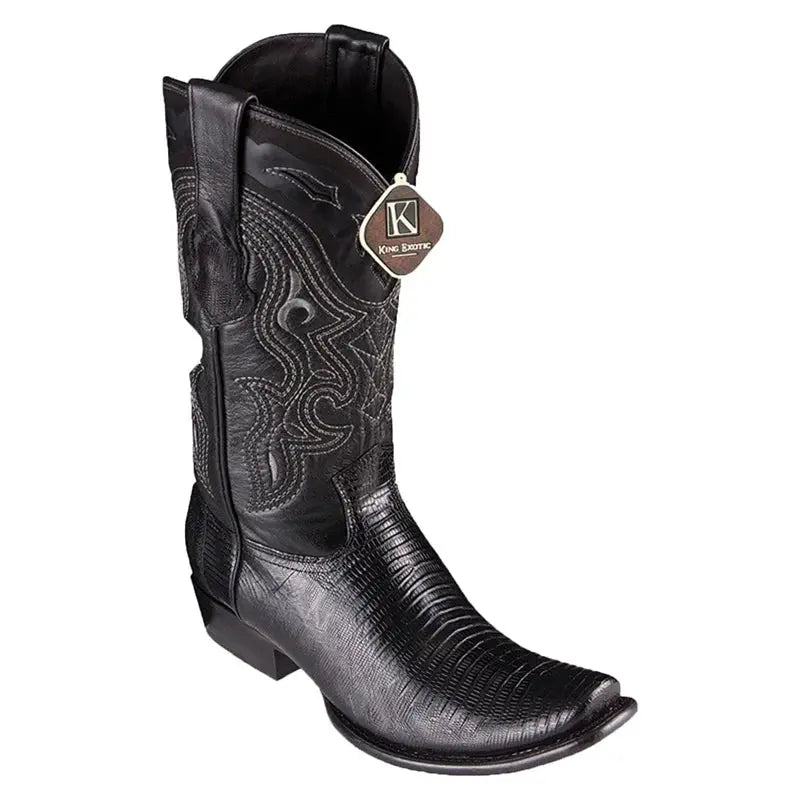 King Exotic 4790705 Men's Black Genuine Teju Lizard Dubai Toe Cowboy Boots