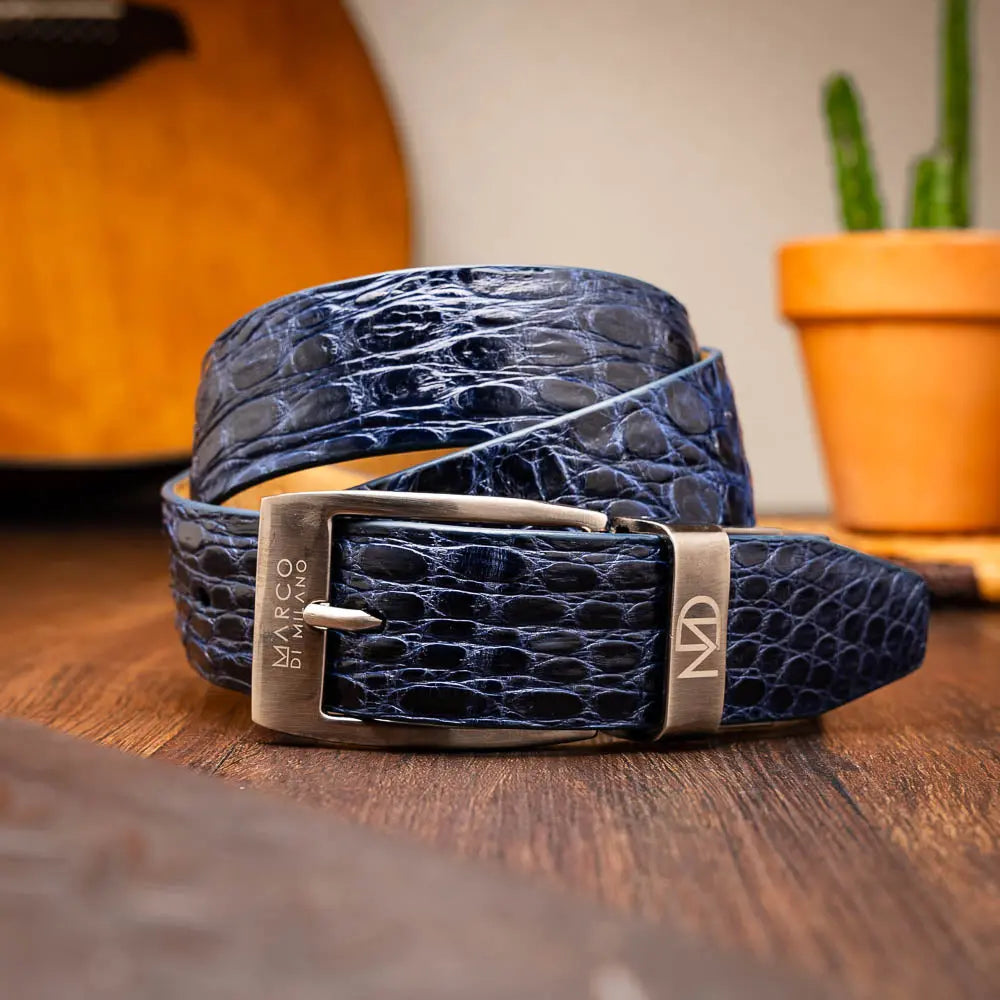Marco Di Milano Massimo Navy Genuine Caiman Crocodile Belt