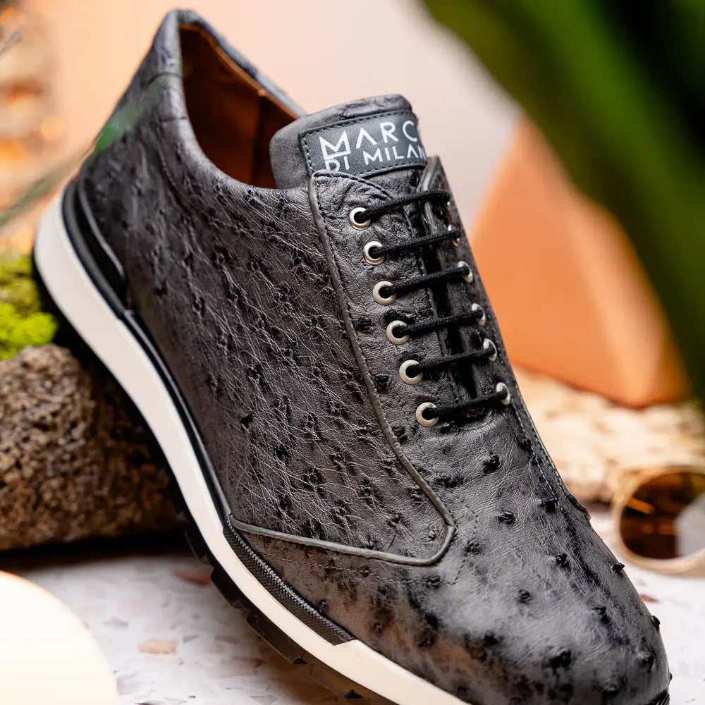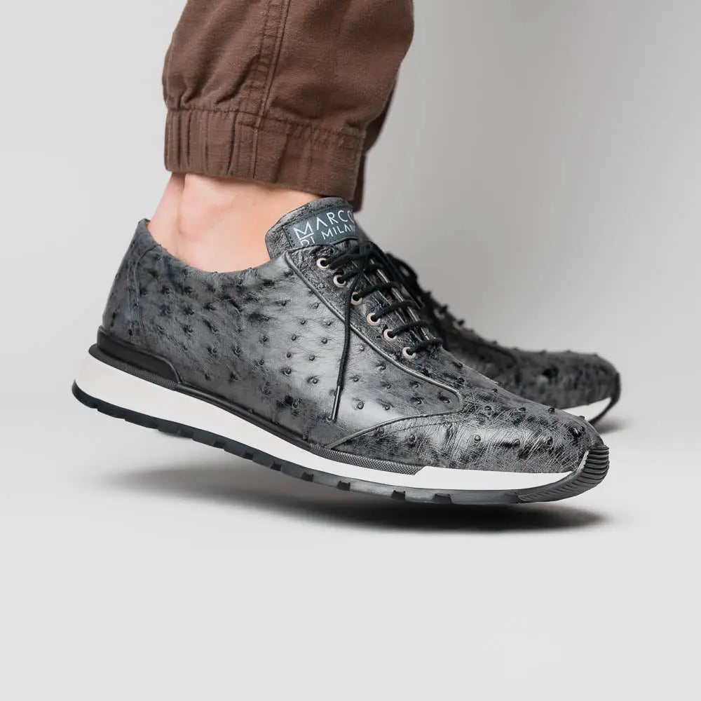 Marco Di Milano Scanno Antique Grey Genuine Ostrich Sneakers