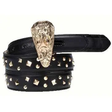 Mauri Black Genuine Baby Crocodile Nappa Leather Gold Studs Leather Belt