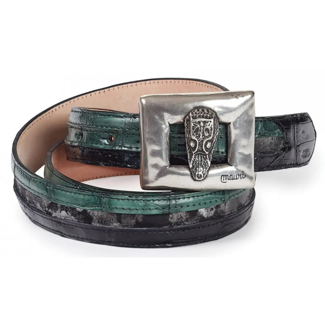 Mauri Black/Hunter Green Genuine Baby Crocodile/Fabric/Body Alligator Hand Painted Belt