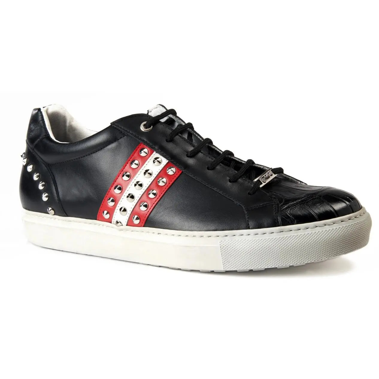 Mauri 8524 Black Genuine Baby Crocodile/Black Nappa/Red-White Nappa Leather Casual Sneakers