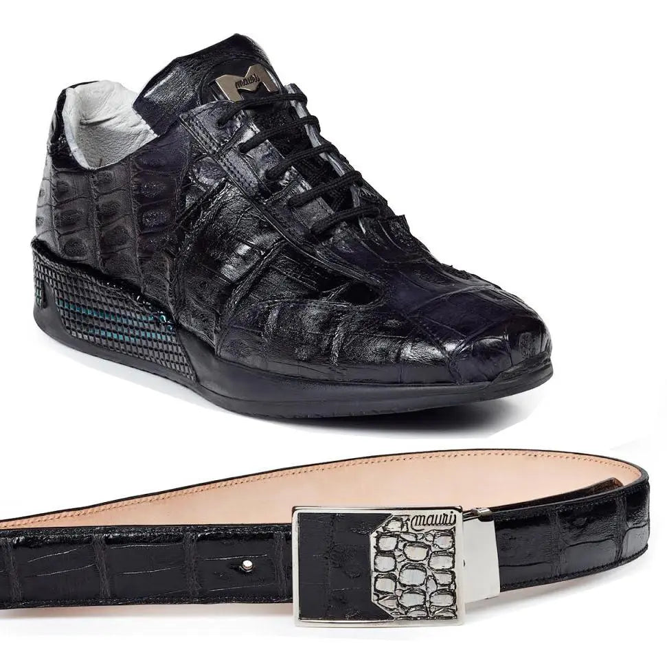 Mauri 8547/3 Black Genuine Baby Crocodile Hand-Painted Casual Sneakers