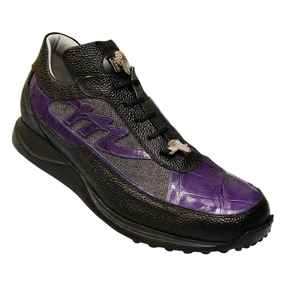 Mauri 8555 Black/New Grape Genuine Alligator/Metallic Fabric/Pebble Grain Nappa Leather Sneakers
