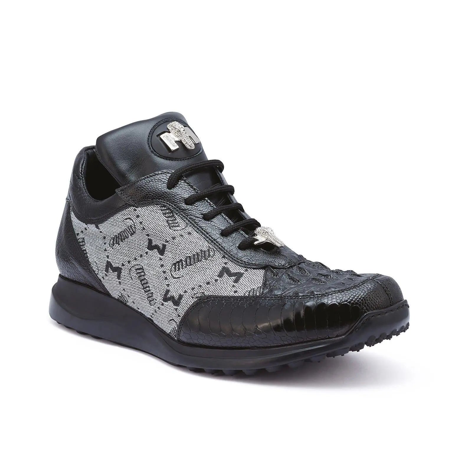 Mauri 8741/2 Crowne Black/Grey Genuine Ostrich Leg/Hornback Crocodile/Mauri Fabric Sneakers