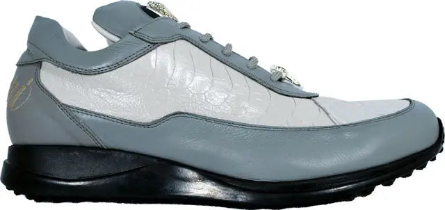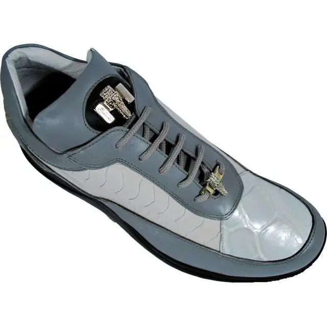 Mauri 8814 Medium Grey/Silver Grey Genuine Alligator/Ostrich Nappa Leather Sneakers