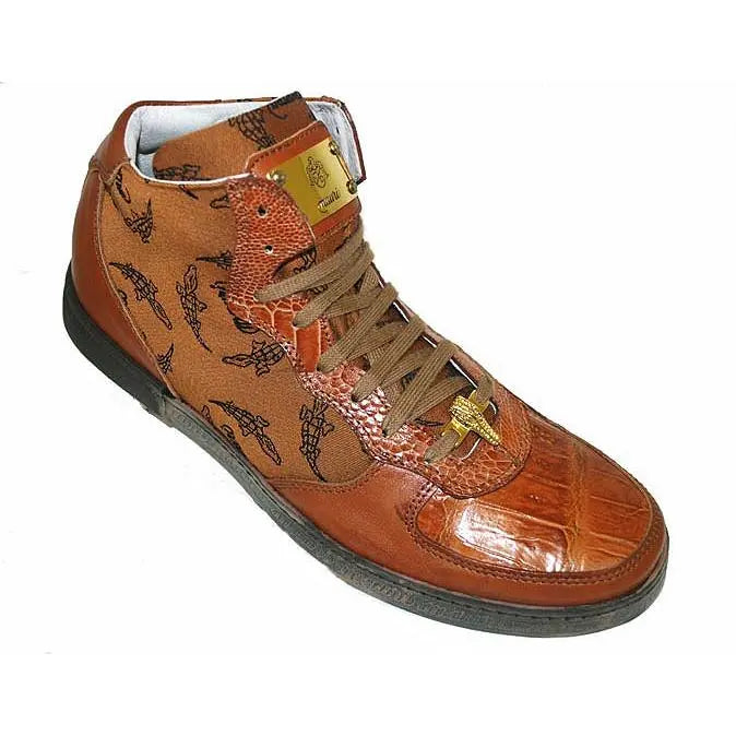 Mauri 8816 Cognac Genuine Alligator/Nappa Leather/Mauri Fabric High-Top Sneakers