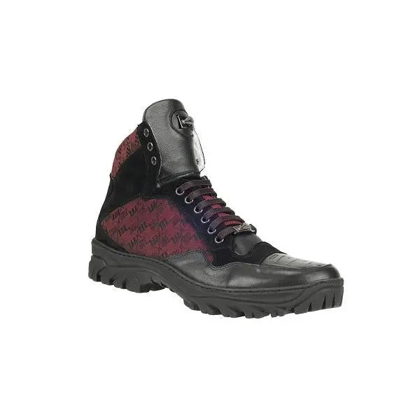 Mauri 8865 Black/Wine Genuine Crocodile/Mauri Fabric High Top Sneakers