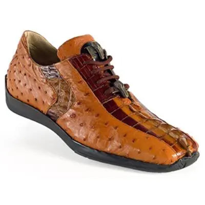 Mauri 8988 Gold/Cognac Genuine Hornback Crocodile Tail/Ostrich Sneakers
