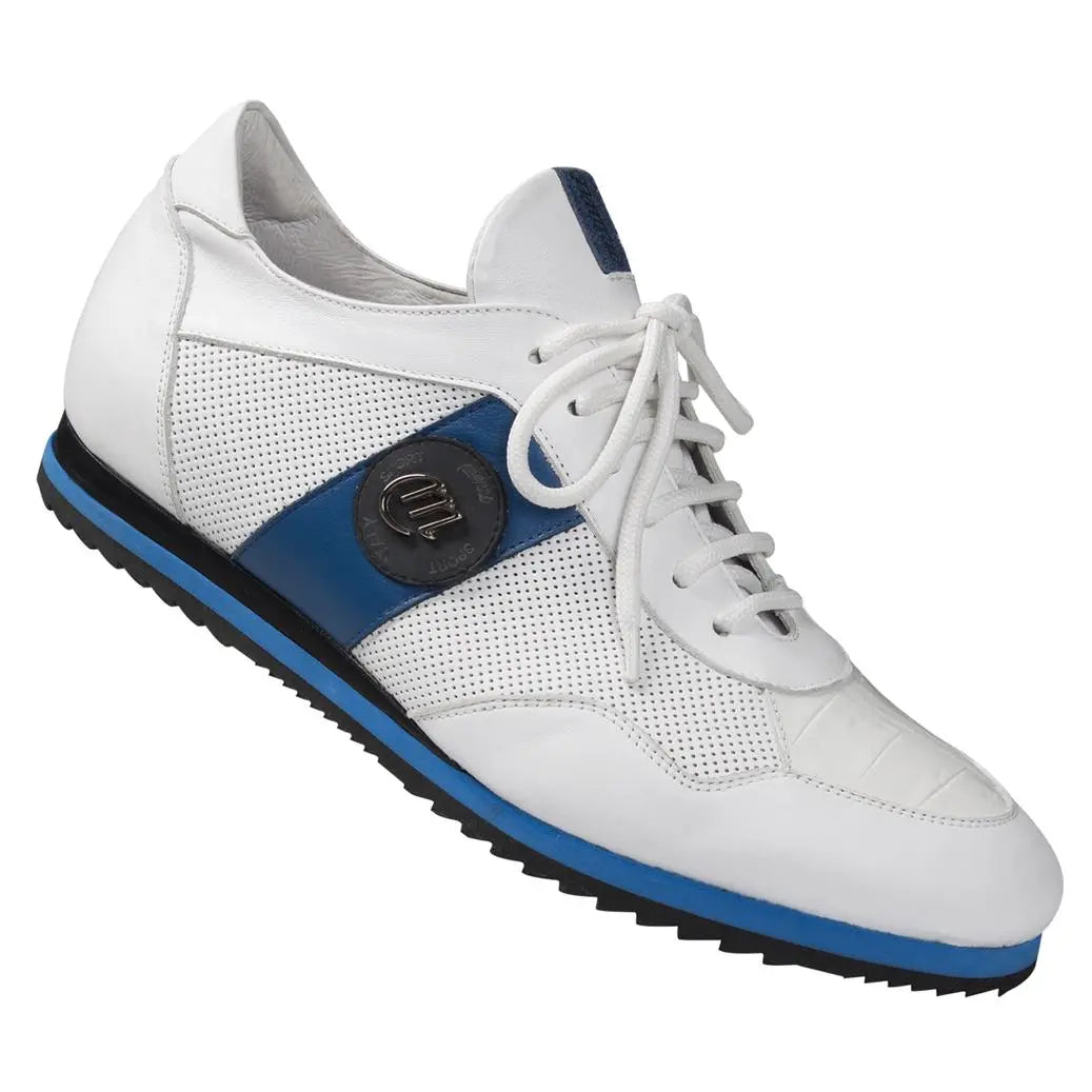 Mauri Brera 8652 White Genuine Baby Crocodile/Nappa Perforated Casual Sneakers