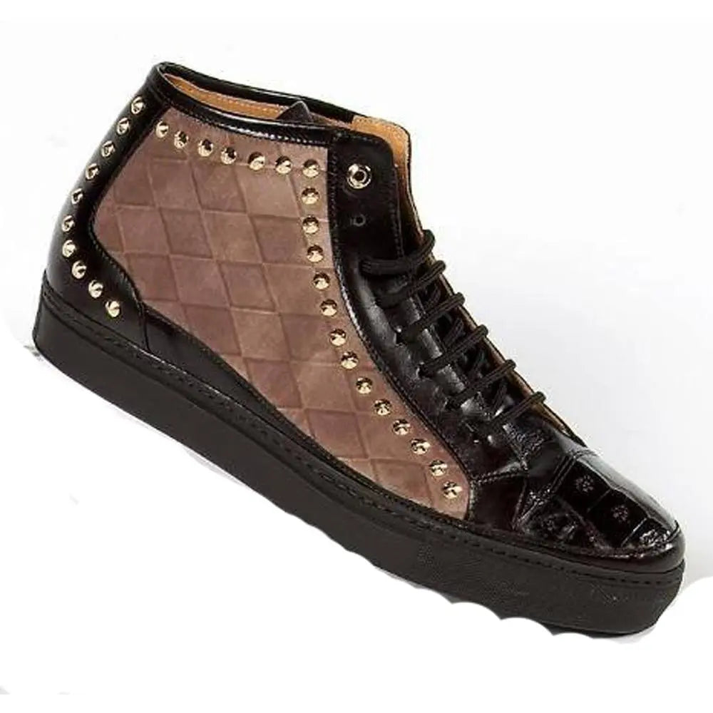 Mauri Brown/Black Genuine Alligator Metal Studded Sneakers