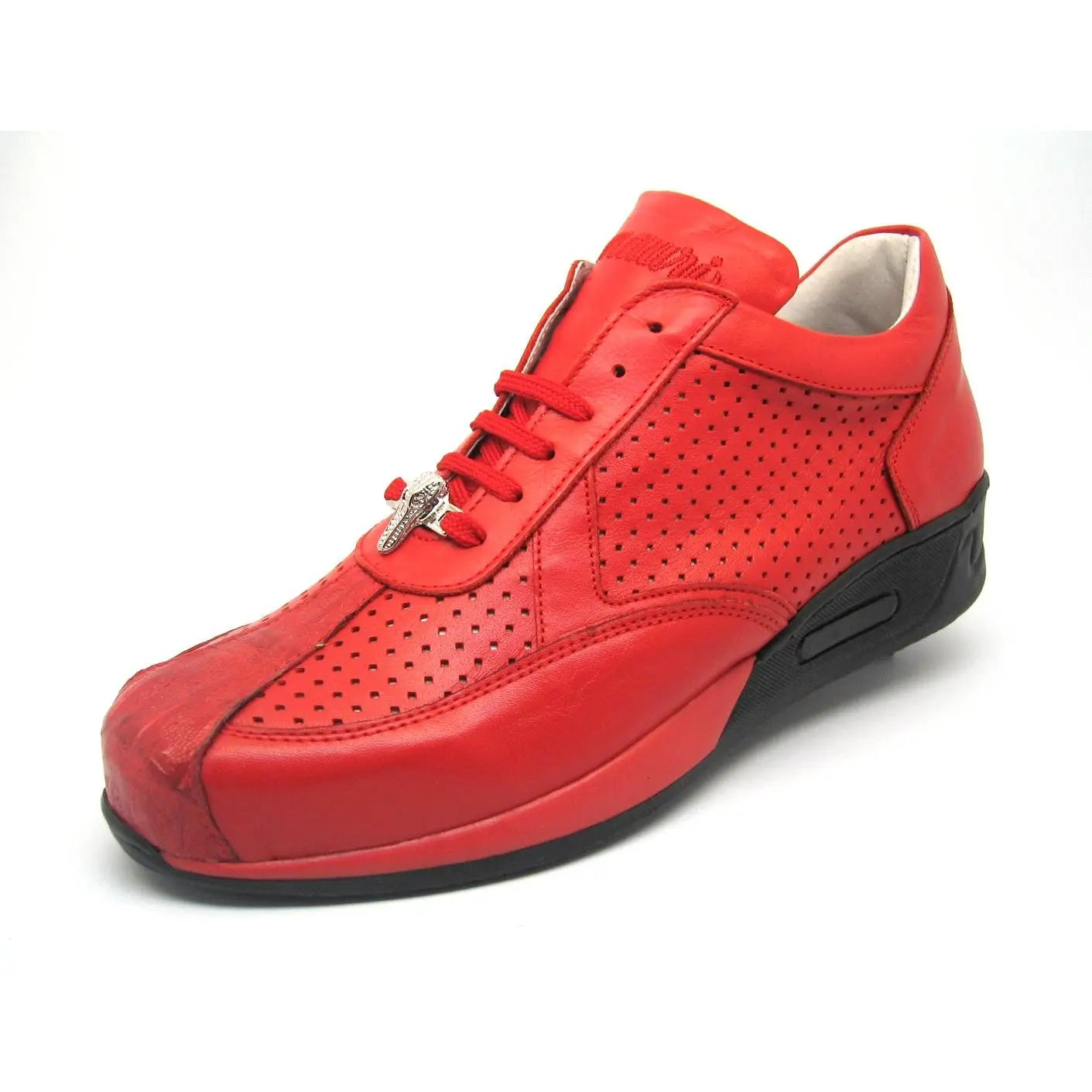 Mauri Cherry M770 Red Genuine Baby Crocodile/Nappa Perforated/Nappa Leather Sneakers