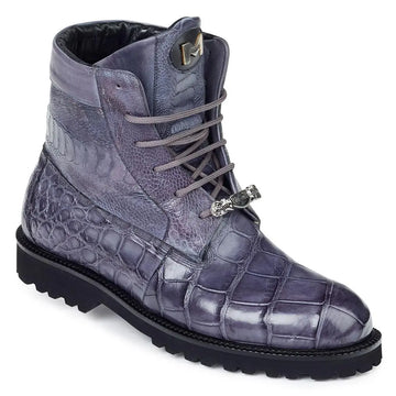 Mauri Commando 4637 Medium Grey Genuine Alligator/Nappa/Ostrich Leg Hand-Painted Boots
