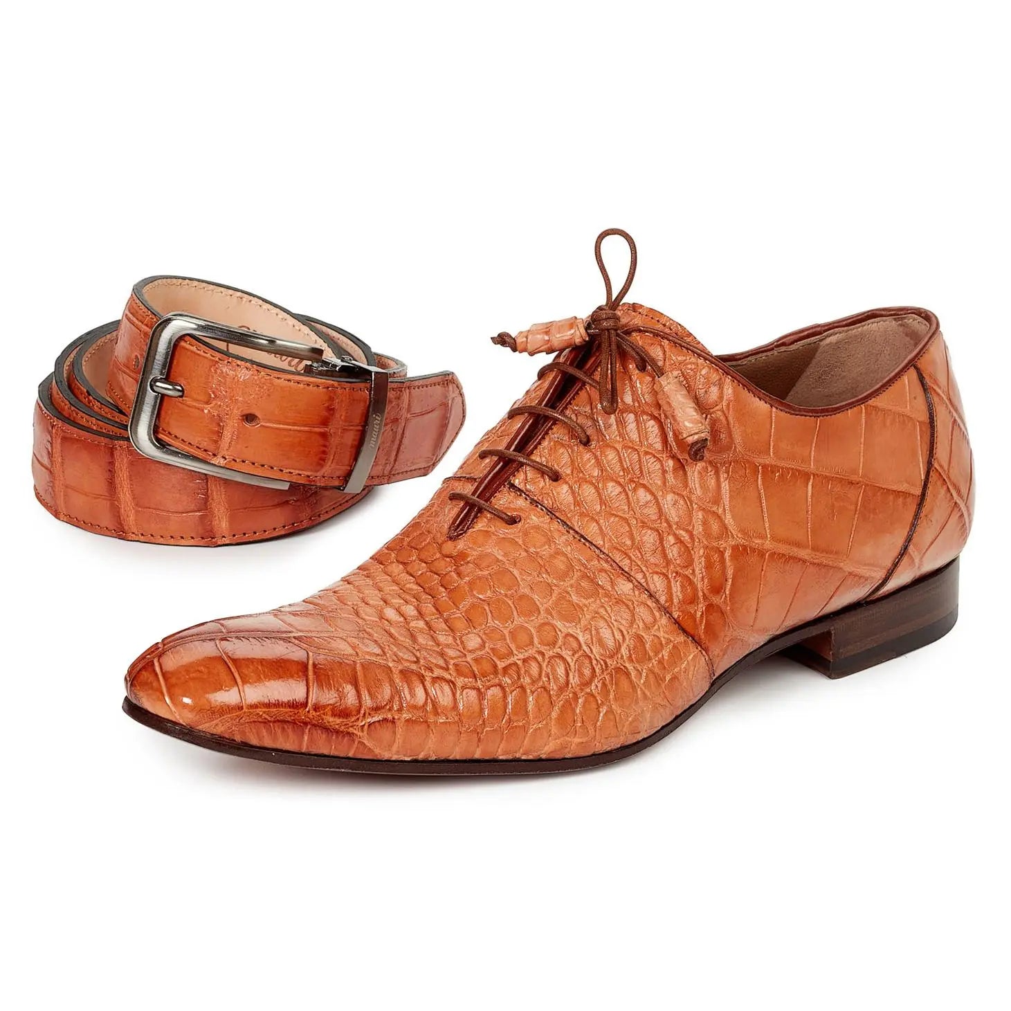 Mauri Echo 1078 Cognac Genuine Body Alligator Hand Painted Shoes