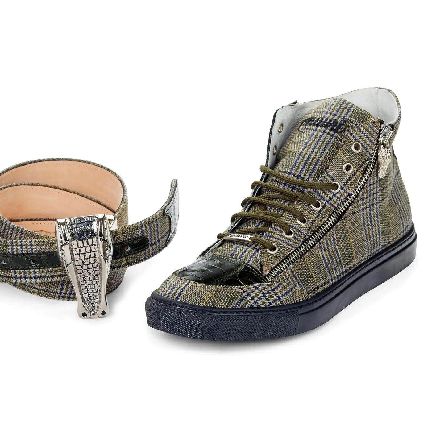 Mauri Enrico M766 Fabric Bridge #2/Olive Genuine Baby Crocodile Casual Sneakers