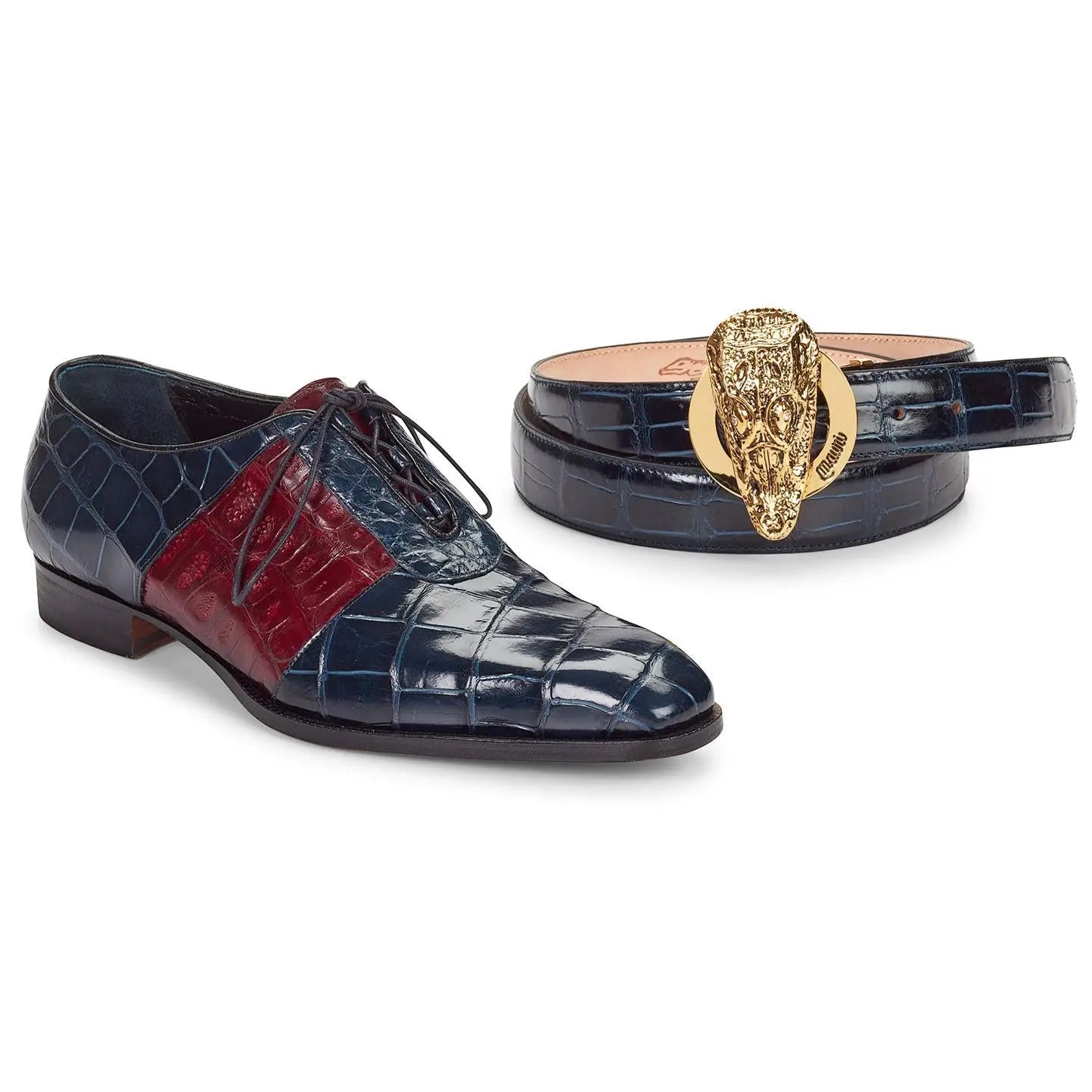 Mauri Giardini 53169 Wonder Blue Genuine Body Alligator/Ruby Red Baby Crocodile Shoes