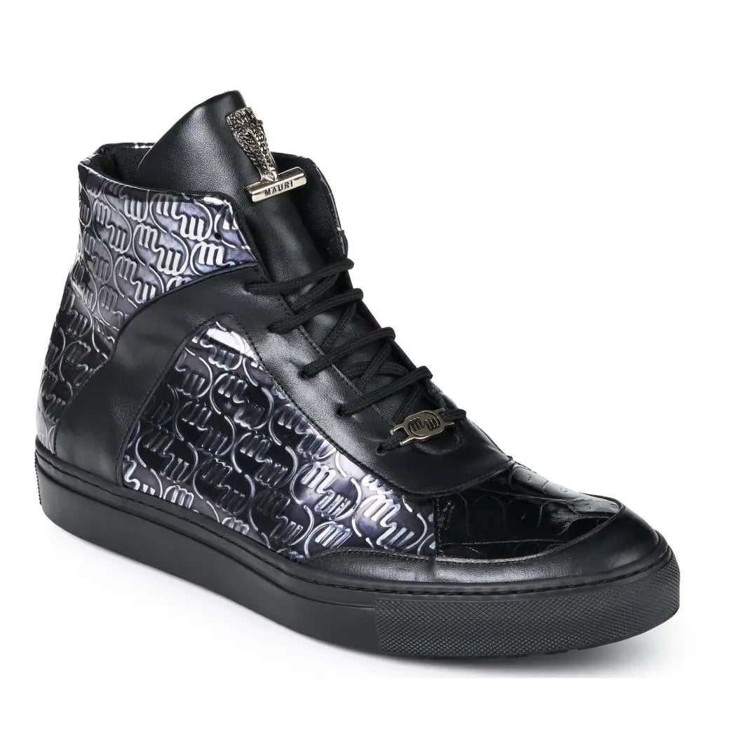 Mauri Heart 8583 Black Genuine Baby Crocodile/Nappa/Calf Hand-Painted Sneakers
