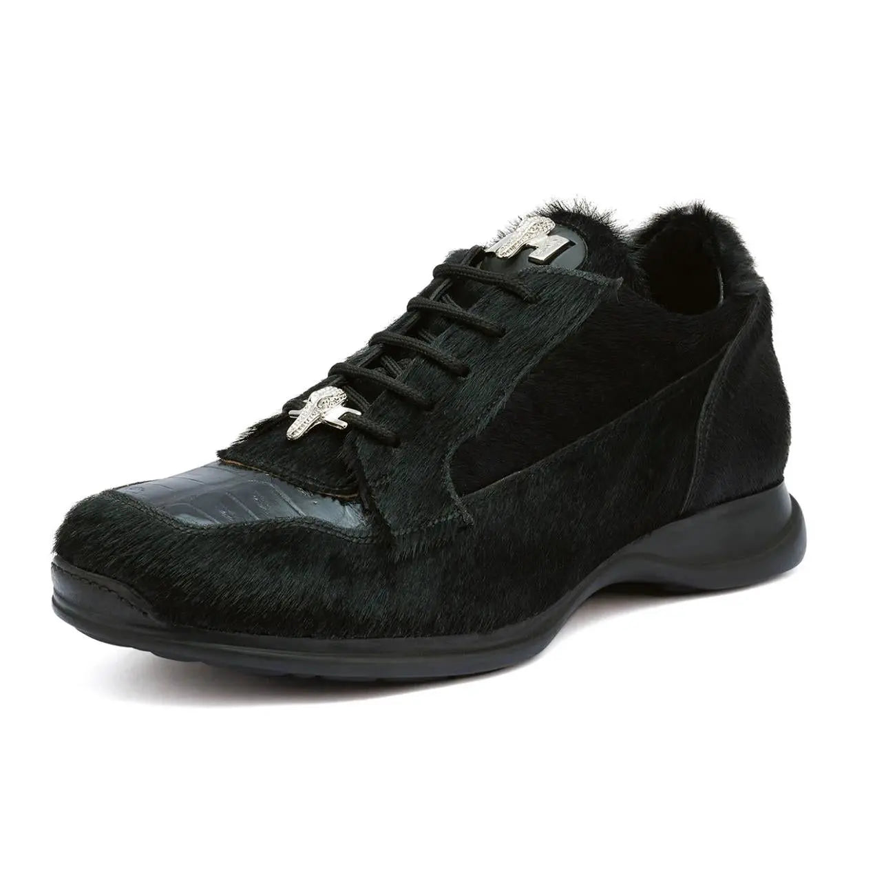Mauri Mustang 8594 Black Genuine Crocodile/Pony Hair Sneakers