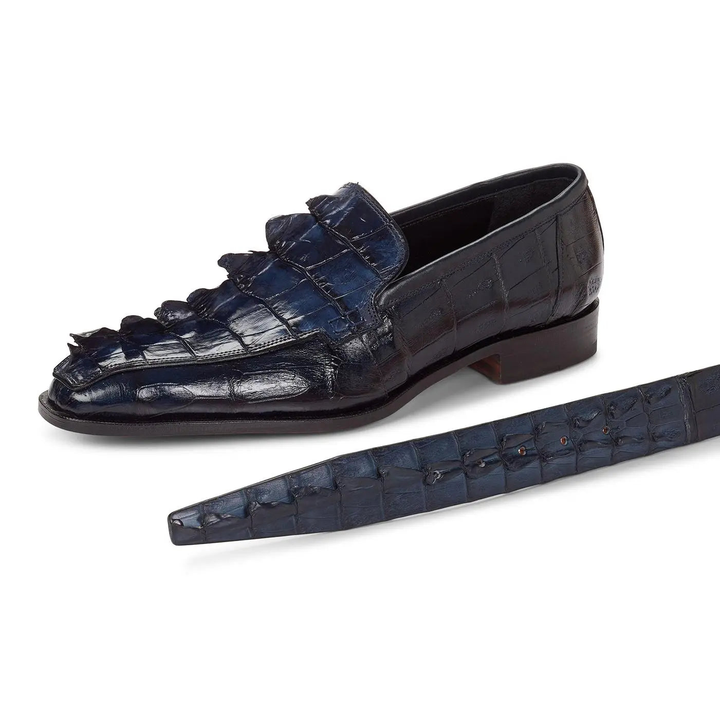 Mauri Orefici 4770 Wonder Blue Genuine Baby Crocodile/Hornback Tail Loafer Shoes