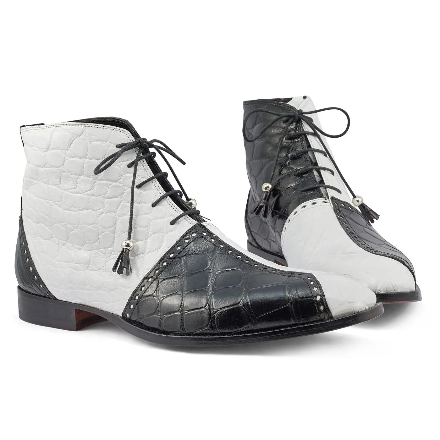 Mauri Othello Black/White Genuine Alligator Boots 3095
