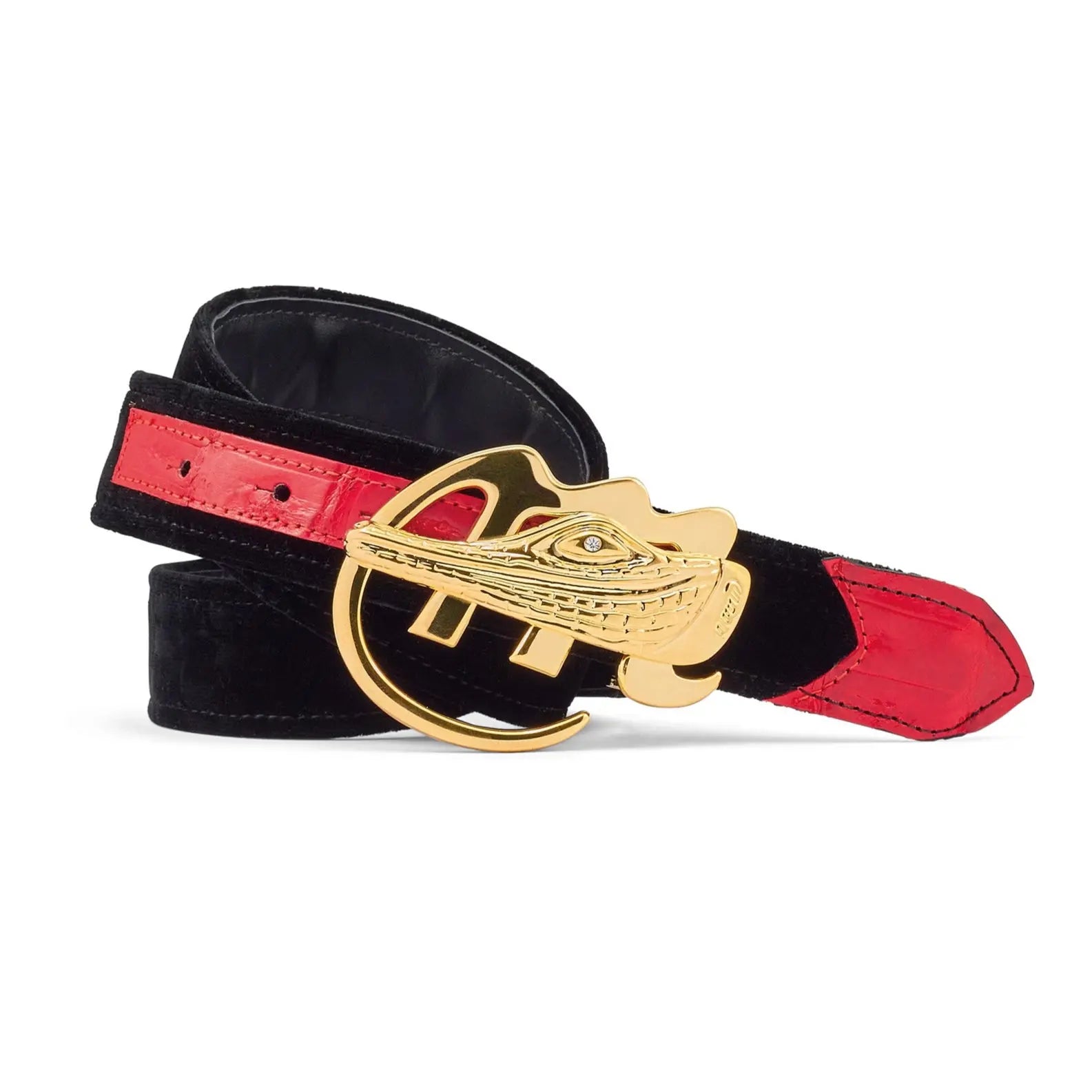 Mauri Red/Black Genuine Crocodile/Velvet Embossed Belt