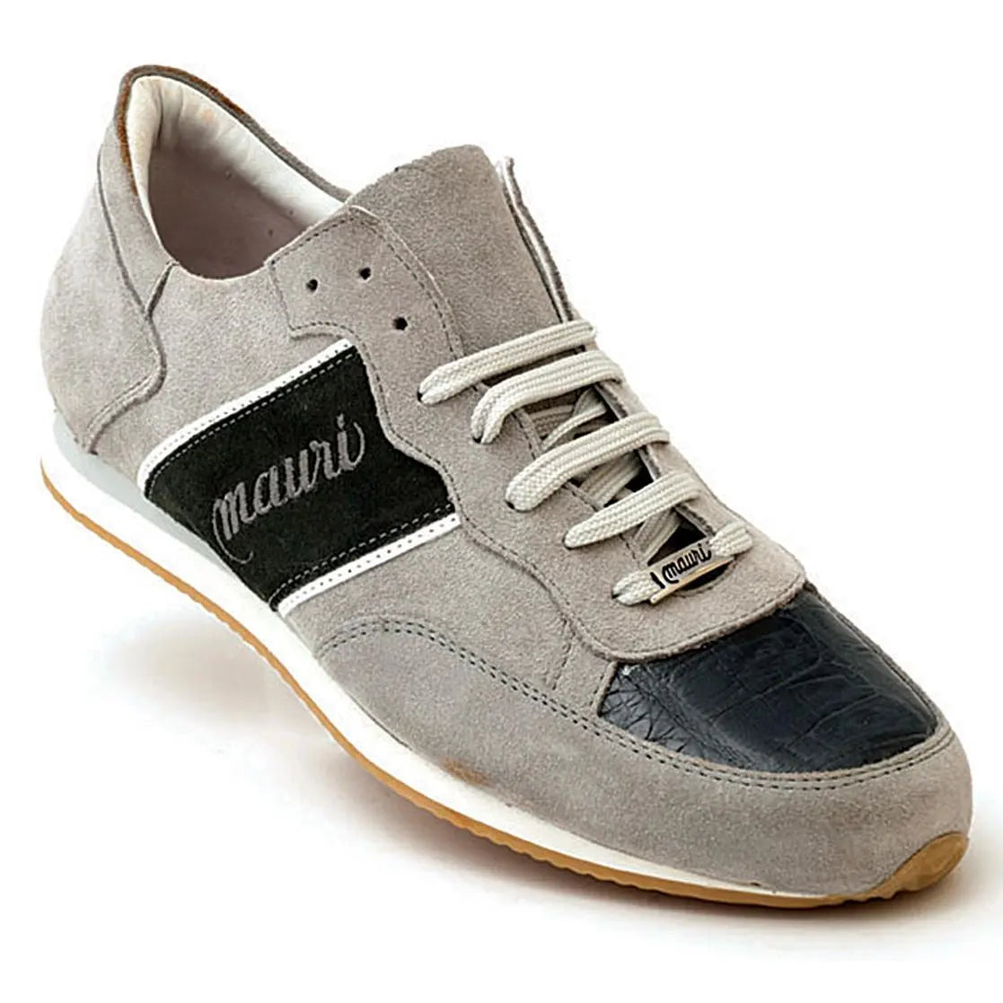 Mauri Scilla M783 Light Grey/Black Genuine Italian Suede/Baby Crocodile Casual Sneakers