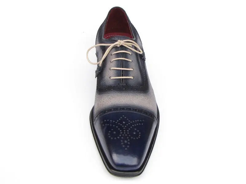 Paul Parkman Men's Captoe Oxfords - Navy / Beige Hand-Painted Suede Upper and Leather Sole (ID#024-BLS)