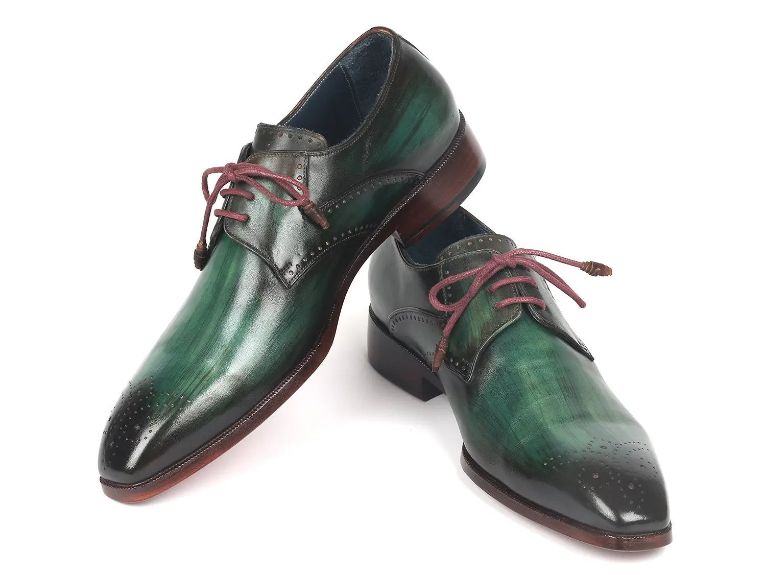Paul Parkman Men's Green Medallion Toe Derby Shoes (ID#6584-GRN)