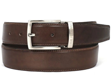 PAUL PARKMAN Men's Leather Belt Hand-Painted Brown (ID#B01-ANTBRW)