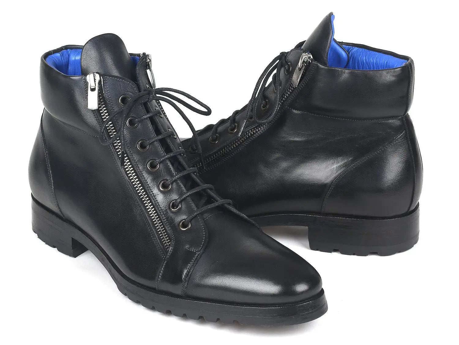 Paul Parkman Men's Side Zipper Leather Boots Black (12455-BLK)