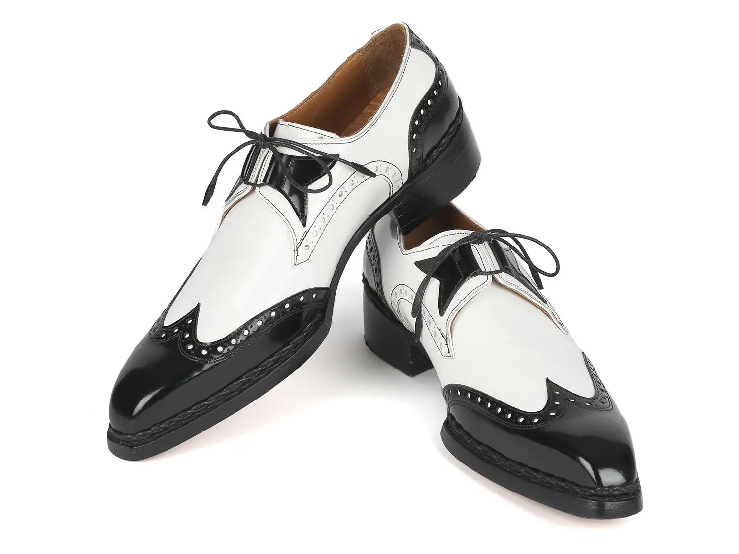 Paul Parkman Norwegian Welted Wingtip Men's Dress Shoes Black & White (ID#8505-BNW)