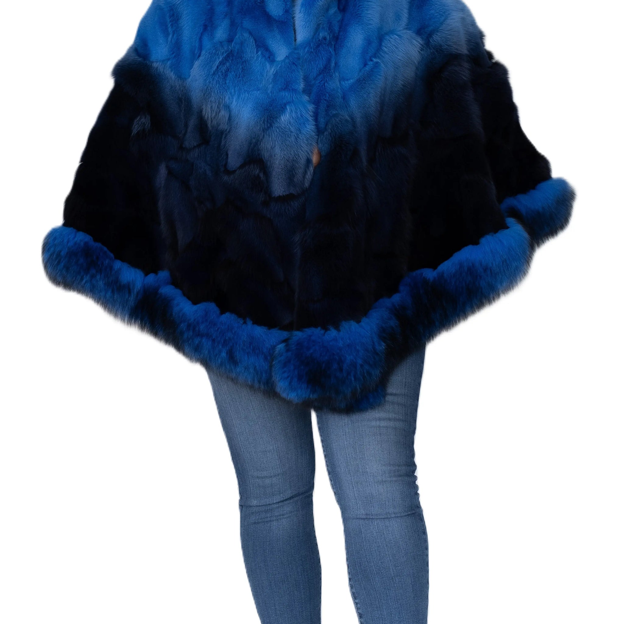 Verona Women's W11C01 Blue/Black Genuine Rabbit Poncho