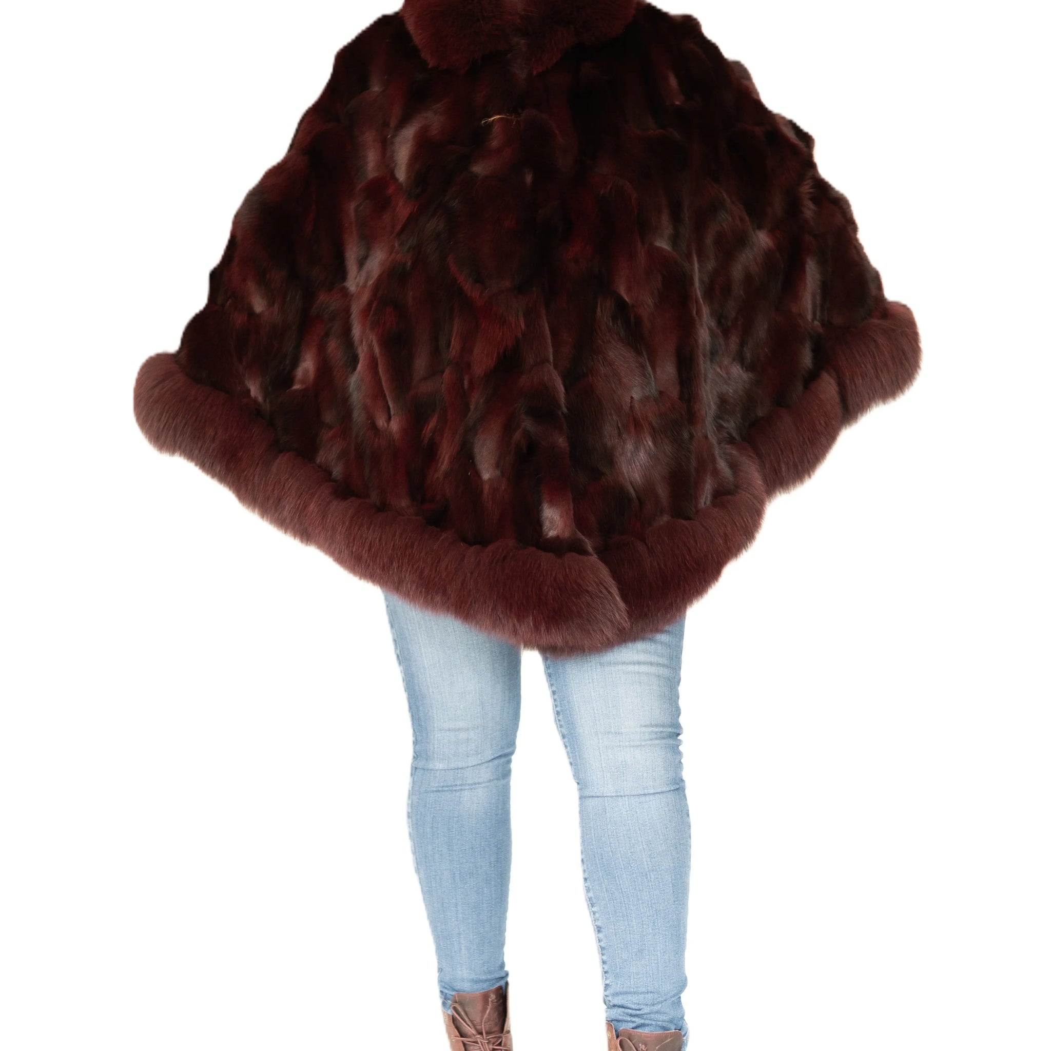Verona Women's W11C01 Burgundy Genuine Rabbit Poncho